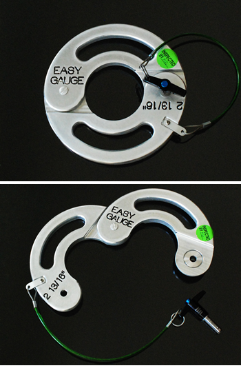Made out of aluminum for strength and durability. Designed for gauging MWD probe fins for accurate sizing to fit the ID of monels (to prevent vibration).